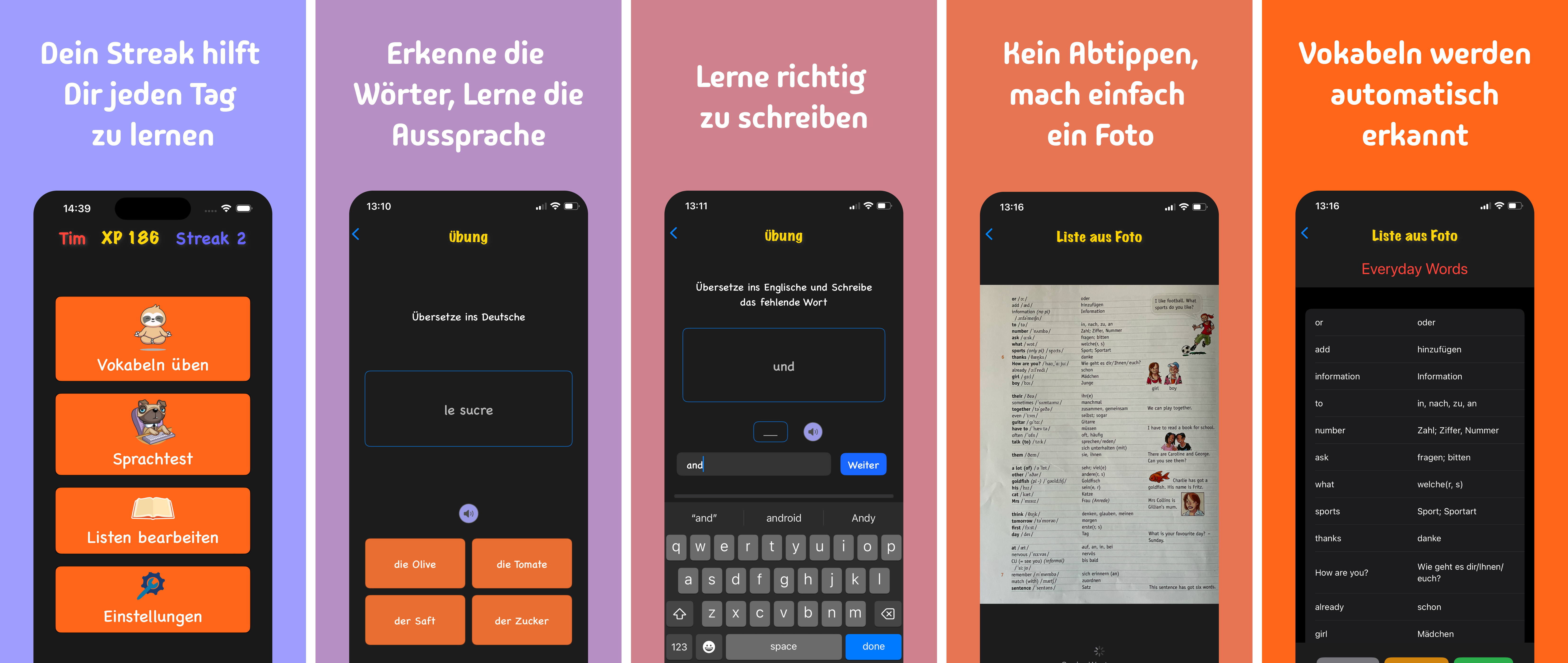Und es ist super einfach: Erstelle eigene Vokabellisten oder mache ein Foto, um neue Wörter hinzuzufügen. Bald kannst Du auch Vokabellisten von Freunden laden und teilen – damit Du nichts mehr verpasst.